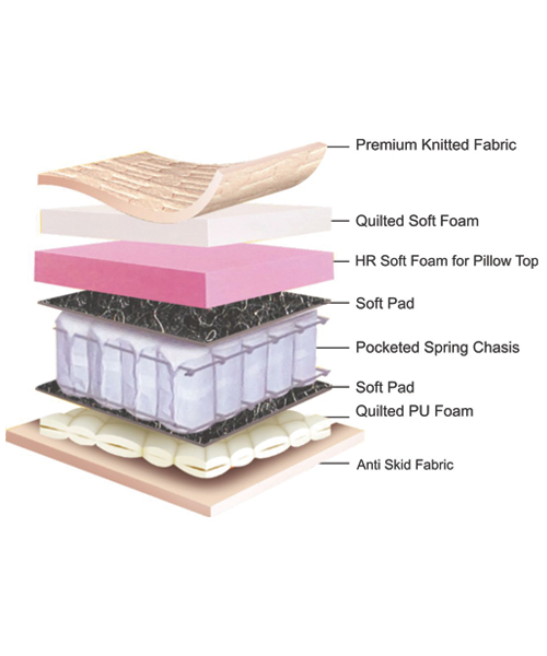 Tags: anti skid mattress, premium knitted fabric, soft foam, spring mattress